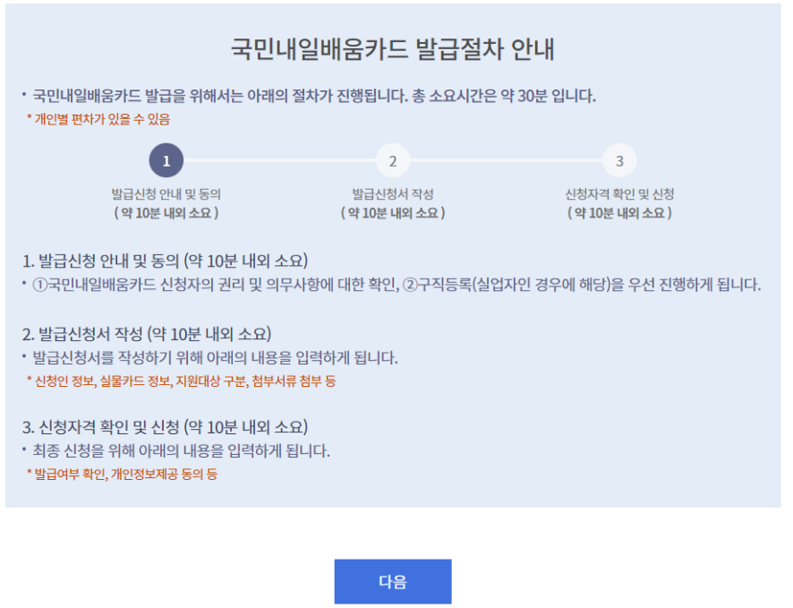 2020년 전에는 실업자와 재직자로 분리해 운영되었지만 개편되면서 국민내일 배움 카드로 통합되고, 훈련을 희망하는 국민이라면 누구나 1인당 5년간 300~500만 원의 지원을 받을 수 있도록 변경되었다고 합니다.