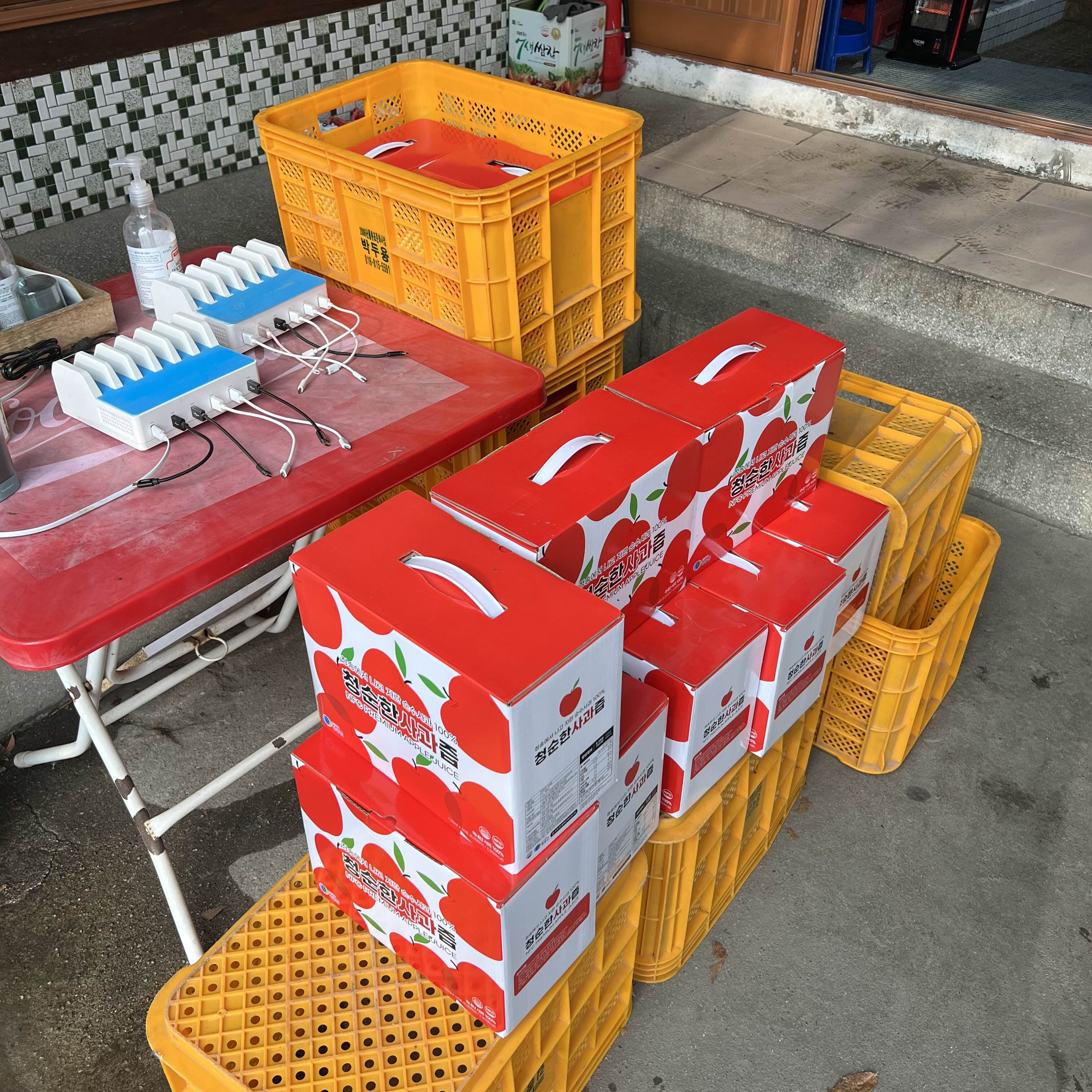 사과즙을 팔고있는데