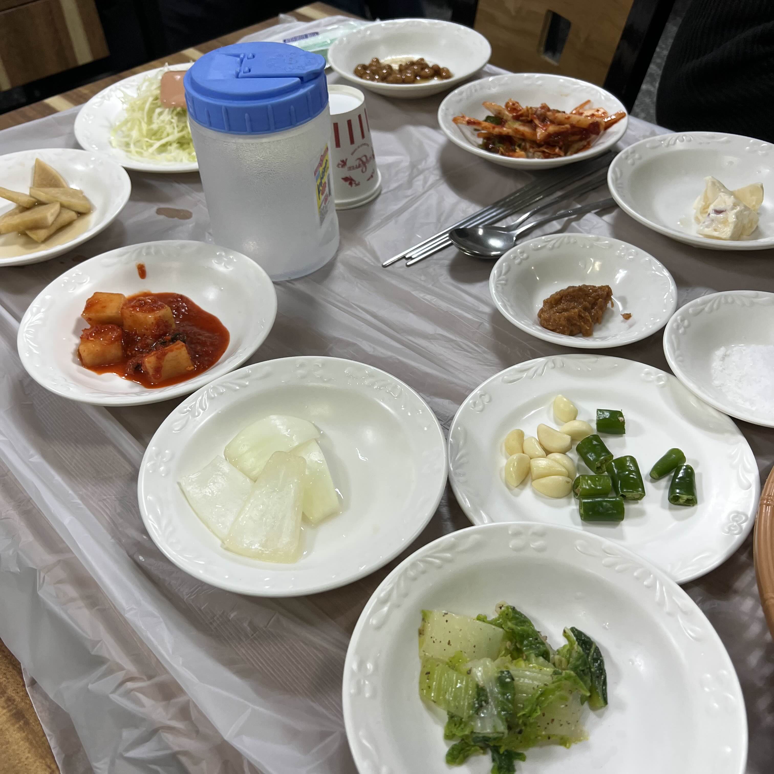 밑반찬으로 나온 고추랑 쌈장이랑 먹으면