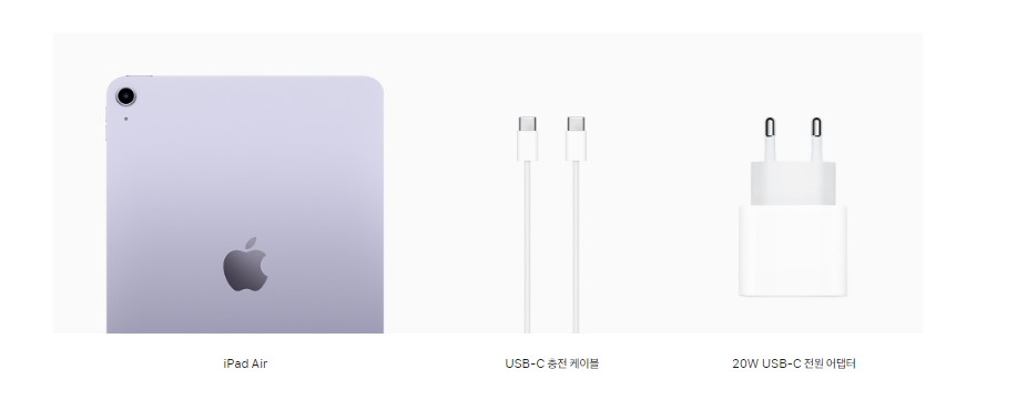 iPad Air(5세대), USB - C 충전 케이블(1m), C타입 어댑터