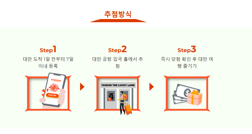 대만에 도착한 후 공항 내 지정된 카운터에서 본인 확인을 거친 뒤, 무작위 추첨이 진행됩니다.
