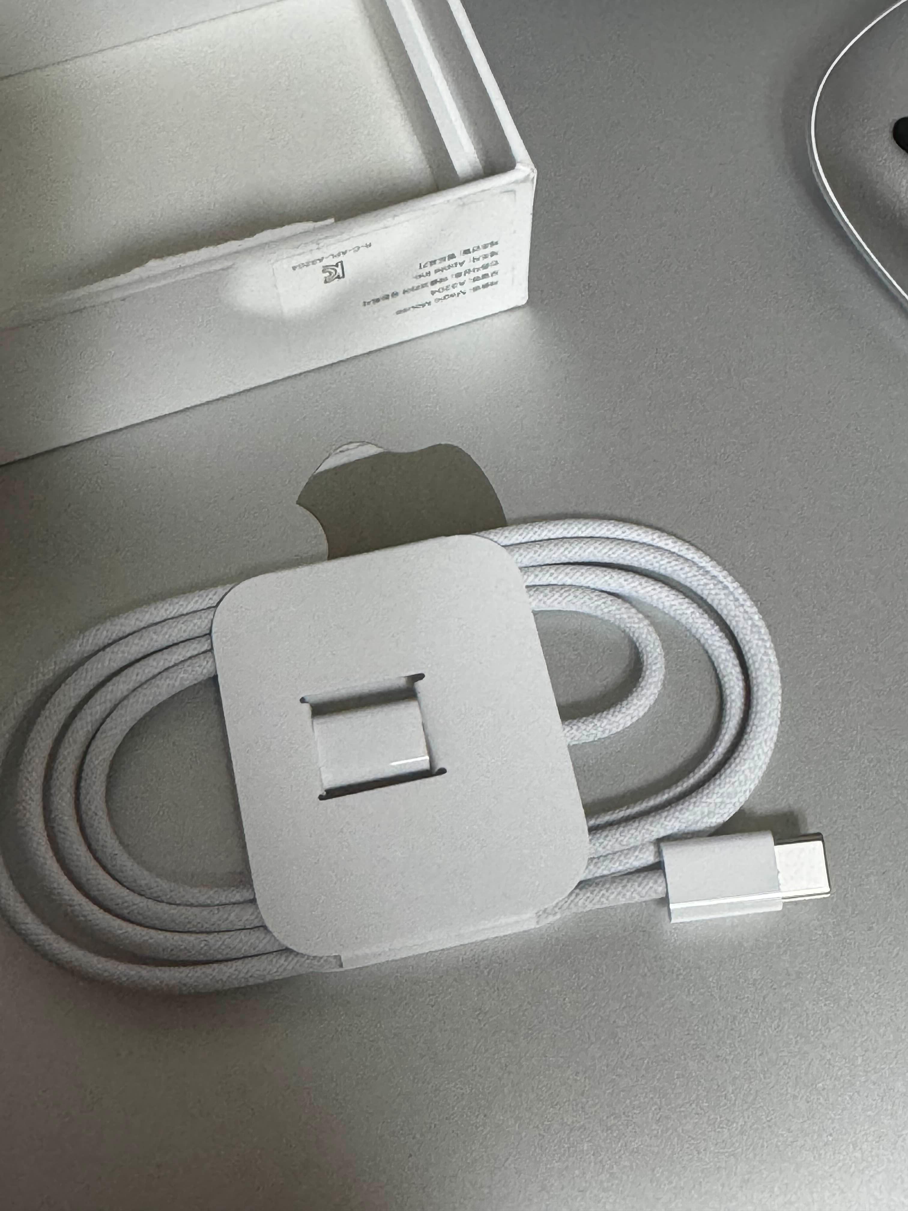 하얀 유광 표면에 애플 로고가 새겨져 있고, 손에 잡았을 때도 부드럽고 가벼운 느낌이었습니다.