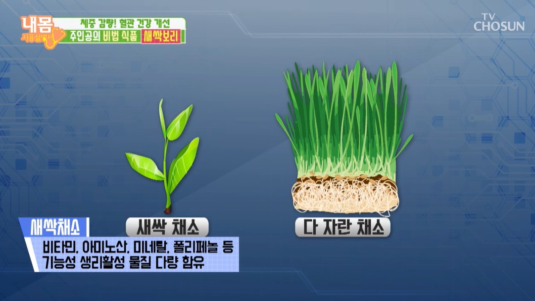 새싹보리는 15~20cm 정도 자란 어린 보리를 뜻합니다. 새싹보리에는 비타민, 미네랄, 식이섬유, 아미노산 등이 풍부해서 성인병 예방에 도움을 준다고 합니다. 또한 새싹보리에 풍부한 폴리코사놀과 폴리페놀은 중성 지방 생성을 막아주며 좋은 콜레스테롤을 생성한다고 합니다. 새싹보리에 다량 함유되어있는 폴리코사놀은 HDL콜레스테롤 수치상승, LDL 콜레스테롤 수치 감소 등에 효과를 보인다고 합니다. (나쁜 콜레스테롤을 줄이고 좋은 콜레스테롤은 올려주는 것) 또한, 중성 지방 생성과 합성을 막고 지방 분해에 효과적이라고 합니다.