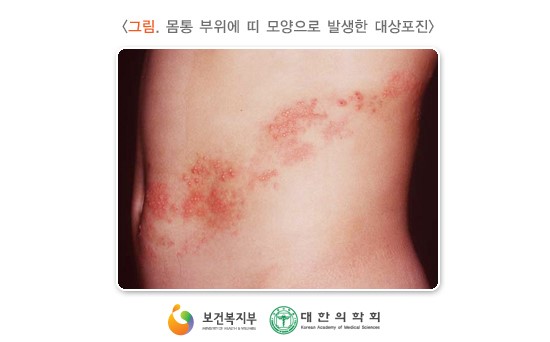 피부 발진이 나타나기 전 가렵거나 통증 등이 피부에 국소적으로 나타날 수 있음
