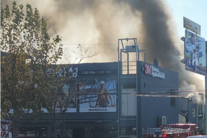 하지만 식당으로 들어가는 길이 좁은 골목길인데다 주방에서 시작된 불이 판넬로 만들어진 식당옆 창고로 옮겨 붙으면서 완전 진화에는 어려움을 겪고 있다고 합니다.