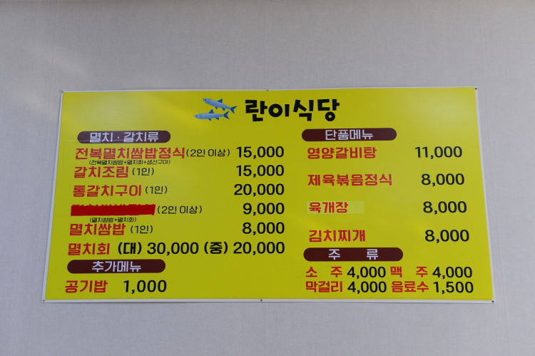 전복멸치쌈밥정식(2인이상) 15,000원 / 갈치조림 15,000원 / 영양갈비탕 11,000원