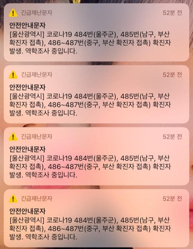 해당 확진자들은 각각 울산 484번~487번 확진자가 되었습니다. 484번 확진자의 경우 전날 확진 판정을 받은 483번 확진자의 가족이라고 합니다. 483번 확진자는 직장 동료인 경남805번 확진자와 접촉한 바가 있다고 합니다. 485번은 부산 1245번 확진자와 지난 10일에 접촉했다고 합니다.