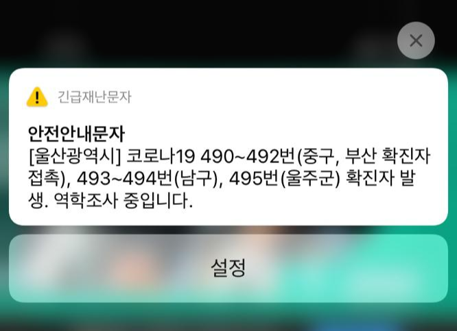 울산시는 중구에 거주하는 50대 2명(울산 490~491번)과 중구 20대(492번), 남구 20대(493번), 남구(494번), 울주군 10대(495번)이 확진 판정을 받았다고 16일 밝혔습니다.