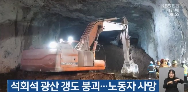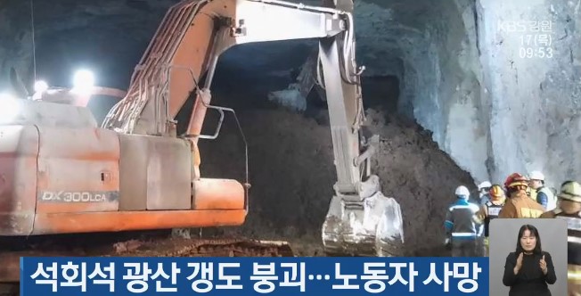 어제 16일 오후 1시 10분쯤 삼척시 근덕면 한 석회석 광산 안 갱도가 무너져 굴삭기로 채굴 작업을 하던 47살 홍모씨가 매몰되어 구조작업 9시간여만인 어젯밤 10시 45분쯤 숨진 채 발견되었다고 합니다.