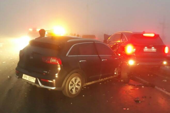 경북 영천에서 블랙아이스(노면 결빙 현상)로 인해 차량 십수 대가 추돌하는 사고가 났다고 합니다. 소방당국에 따르면 28일 오전 6시 53분경 경북 영천시 녹전동 오미교차로 부근에서 차량 18대가 추돌했다고 합니다.