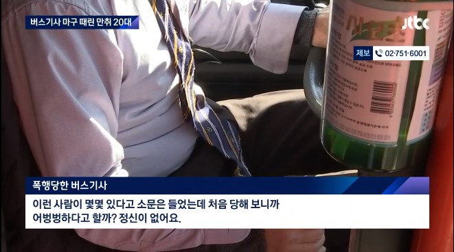 이미 정류장을 떠난 버스를 막아 세워 탑승 후 요금을 내지 않고 다리에 앉아 요금을 내라는 버스기사를 때리고 다시 운전석에 돌아온 버스기사를 따라와서 때리고 핸들 돌리고 말리는 승객도 때리고 경찰이 와서 제지하는대도 아랑곳 않고 버스기사를 때리고 술에 취해 기억이 안 난다고 하는데 그 정도면 술을 영원히 끊고 안 드시는 게 나을 것 같네요. 주행 중에 그랬으면 사고 났을 겁니다.