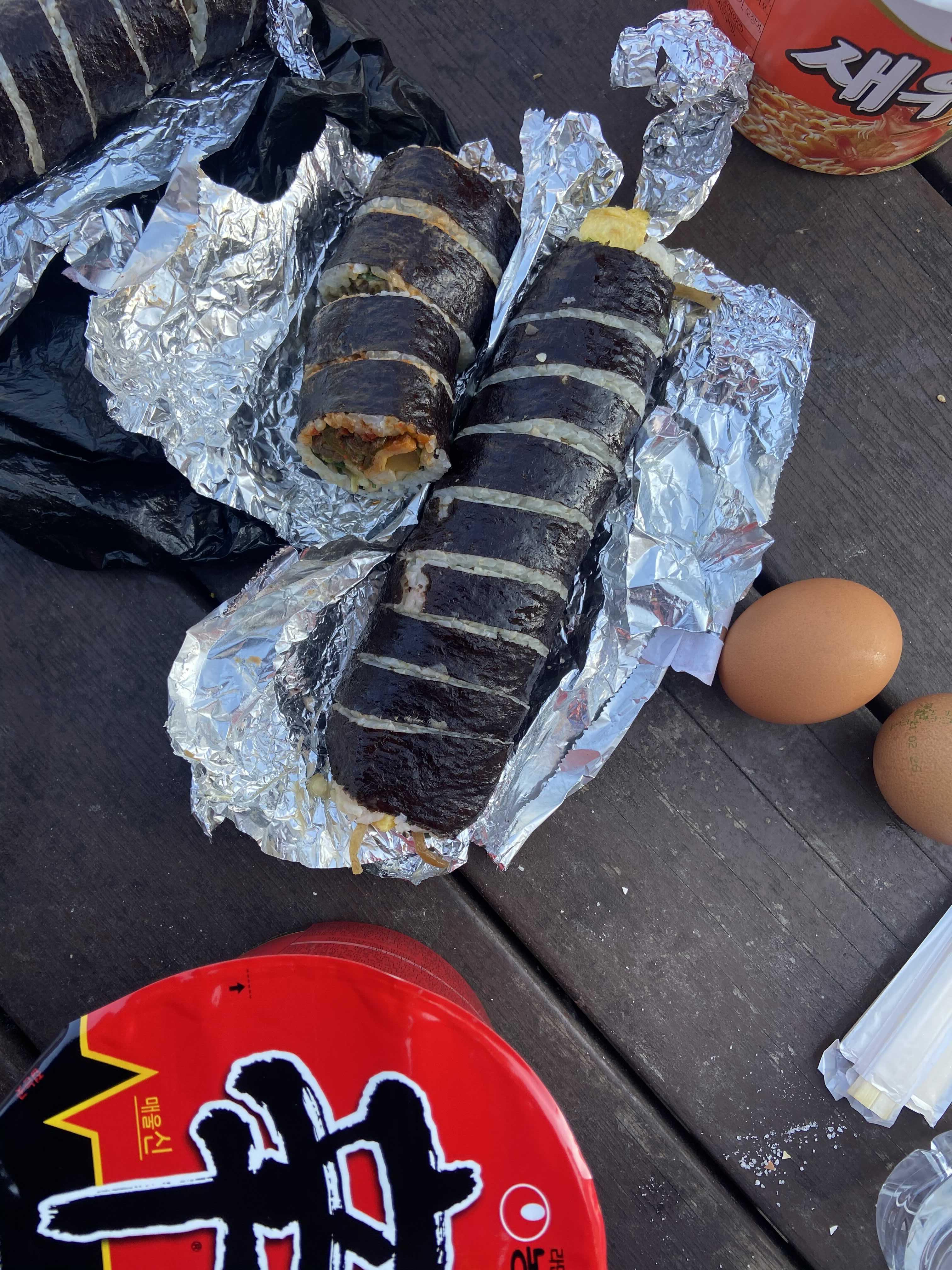 올라가서 먹을 김밥과 아침으로 먹을 김밥을