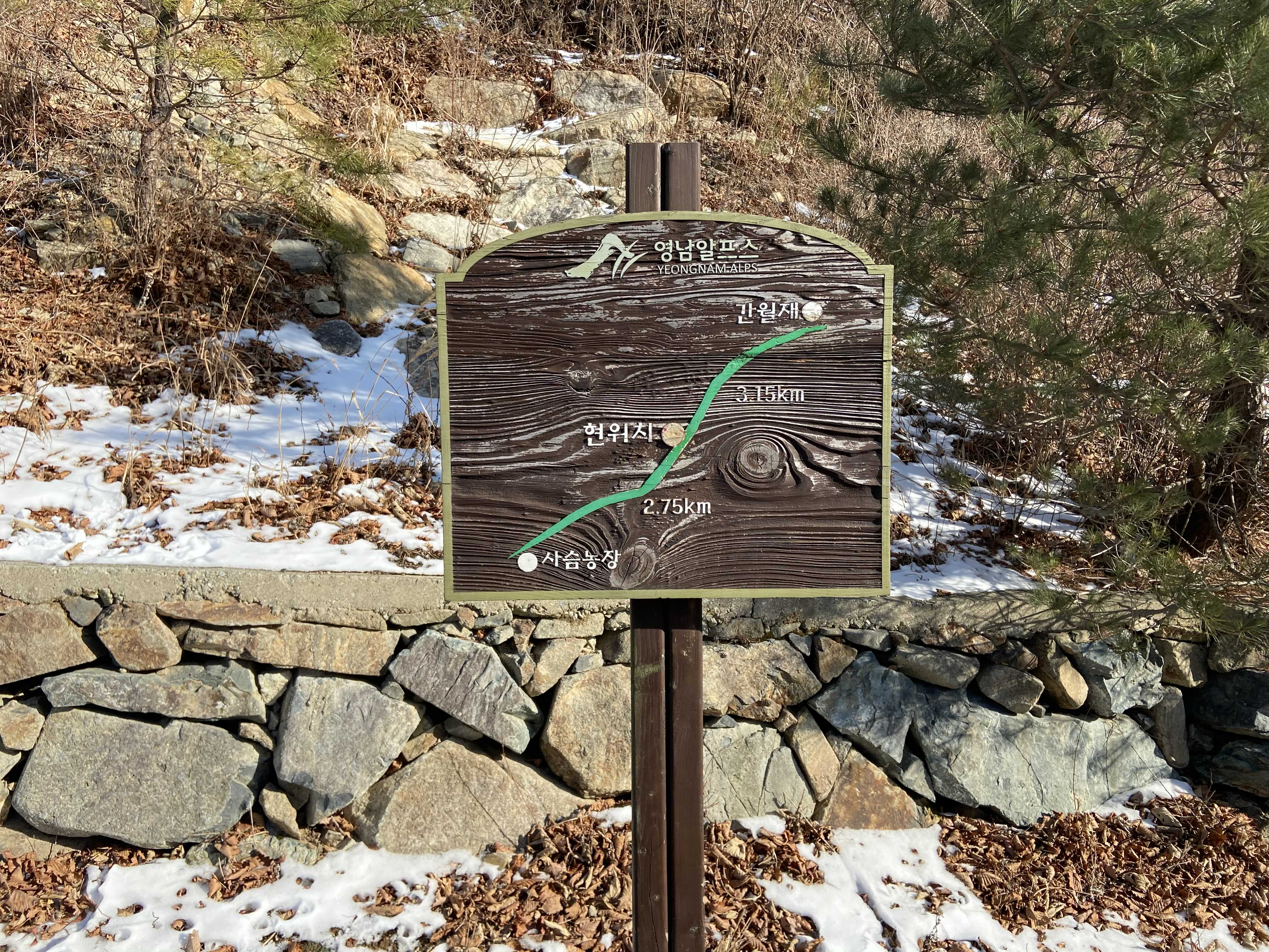 사슴농장 코스로 시작하실 분들은 네비에 배내 2 공영주차장을 검색