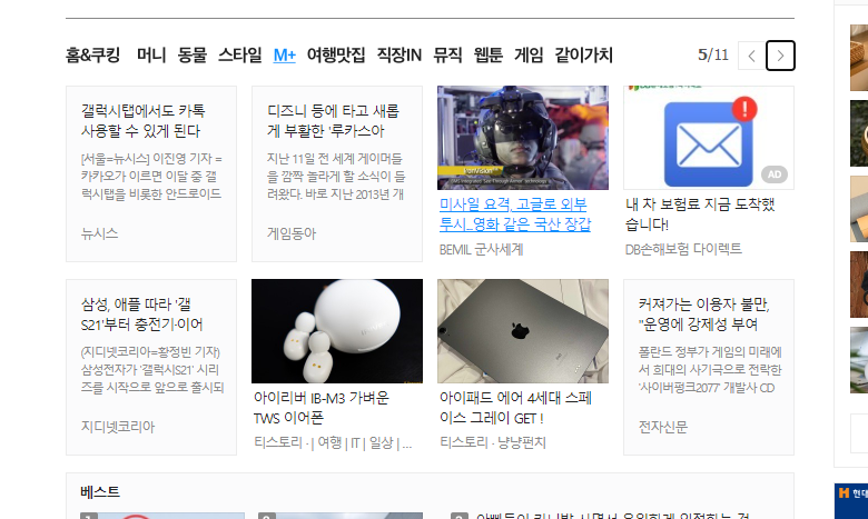 경로가 확인되었다. 처음에는 음? 이렇게 된거는 어떤거지하다가 짧은 시간에 저런 다음 경로로 너무 들어오길래 다음 포털 메인으로 가봤다. 처음에는 모바일로 접속해 확인을 했는데, 모바일로는 도저히 찾을 수가 없었다.
