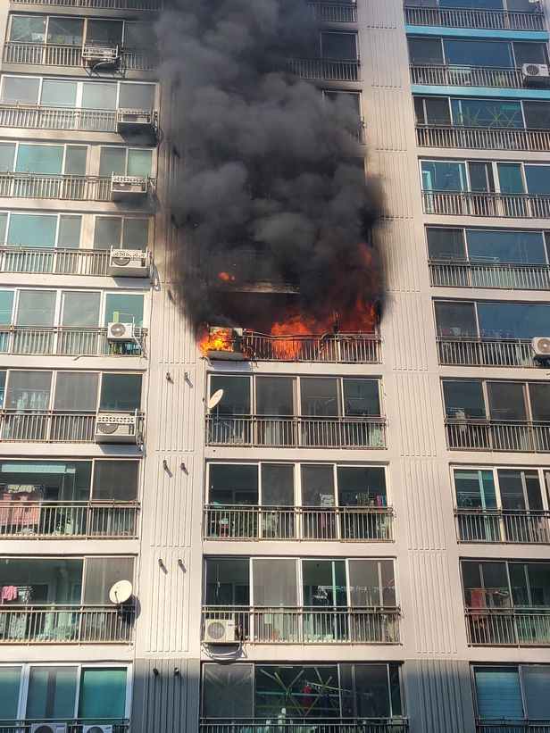 오늘 낮 2시경 경남 김해시 구산동의 12층짜리 아파트 6층에서 불이 났다고 합니다.