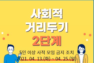 정부 지침은 5월 2일까지 거리두기 수도권은 2단계, 비수도권은 1.5단계라고 합니다.