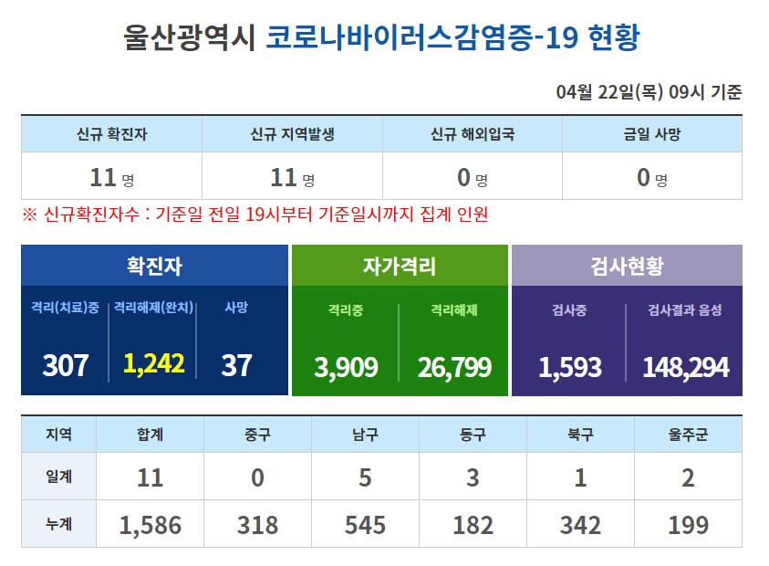 21일인 어제 10시 01분 기준으로 울산 코로나19 신규 확진자가 39명이라고 하네요.
