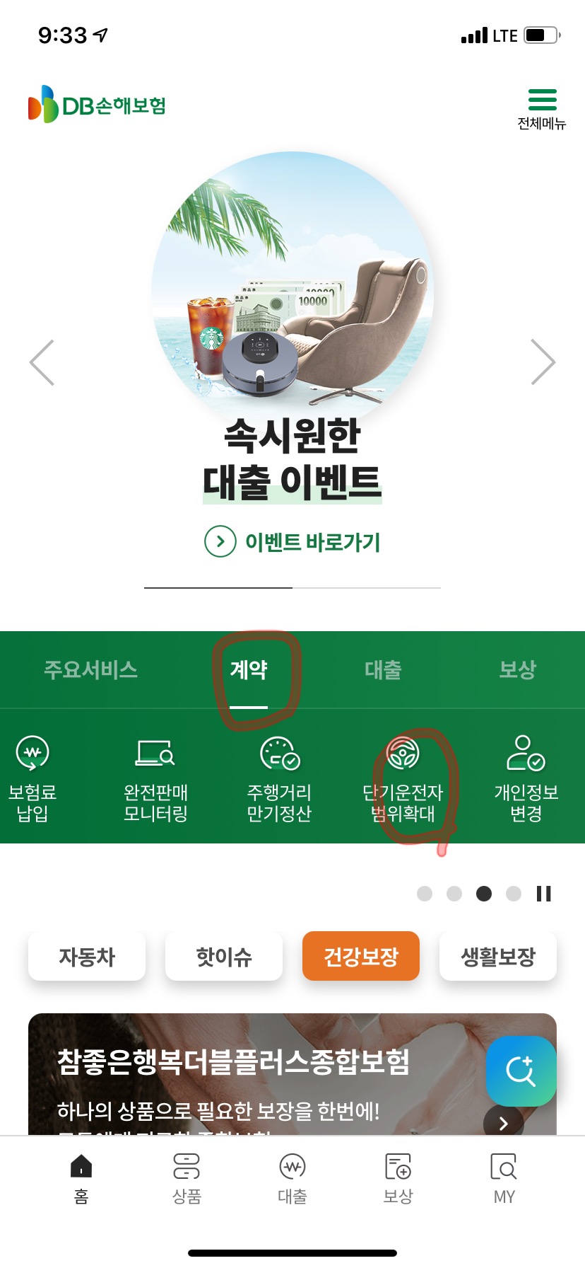 우선 계약 누르고 단기운전자단위 확대를 클릭