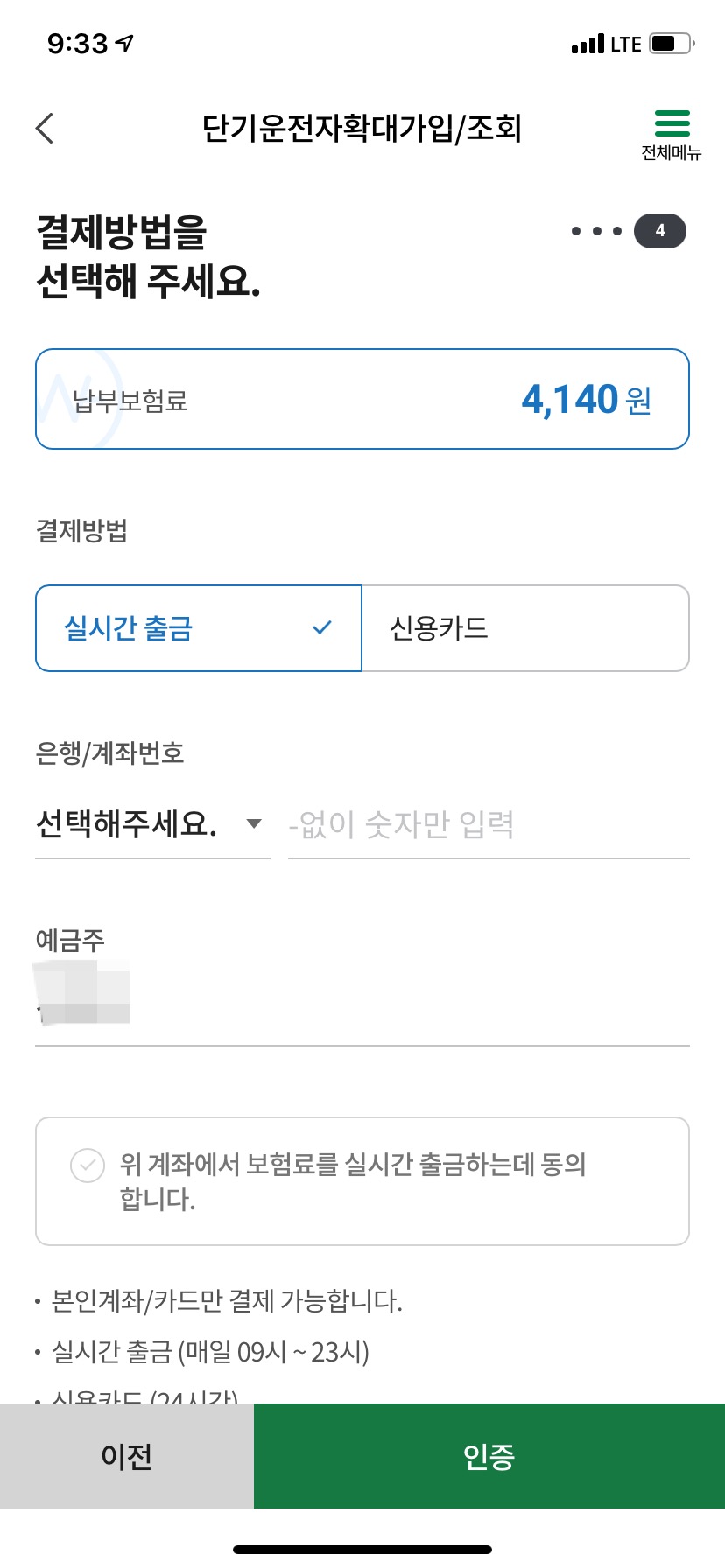 1일 운전자 보험을 가입합니다.