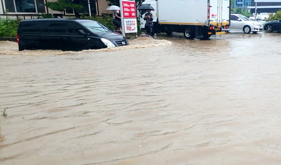강릉의 저(低)지대 지역에서 침수 피해가 속출했다. 출근길에 나선 차들이 도로 한복판에 멈춰 견인차를 불렀지만, 성인 허벅지까지 빗물이 들어차면서 견인차도 접근할 수 없는 상황이었다고 합니다.