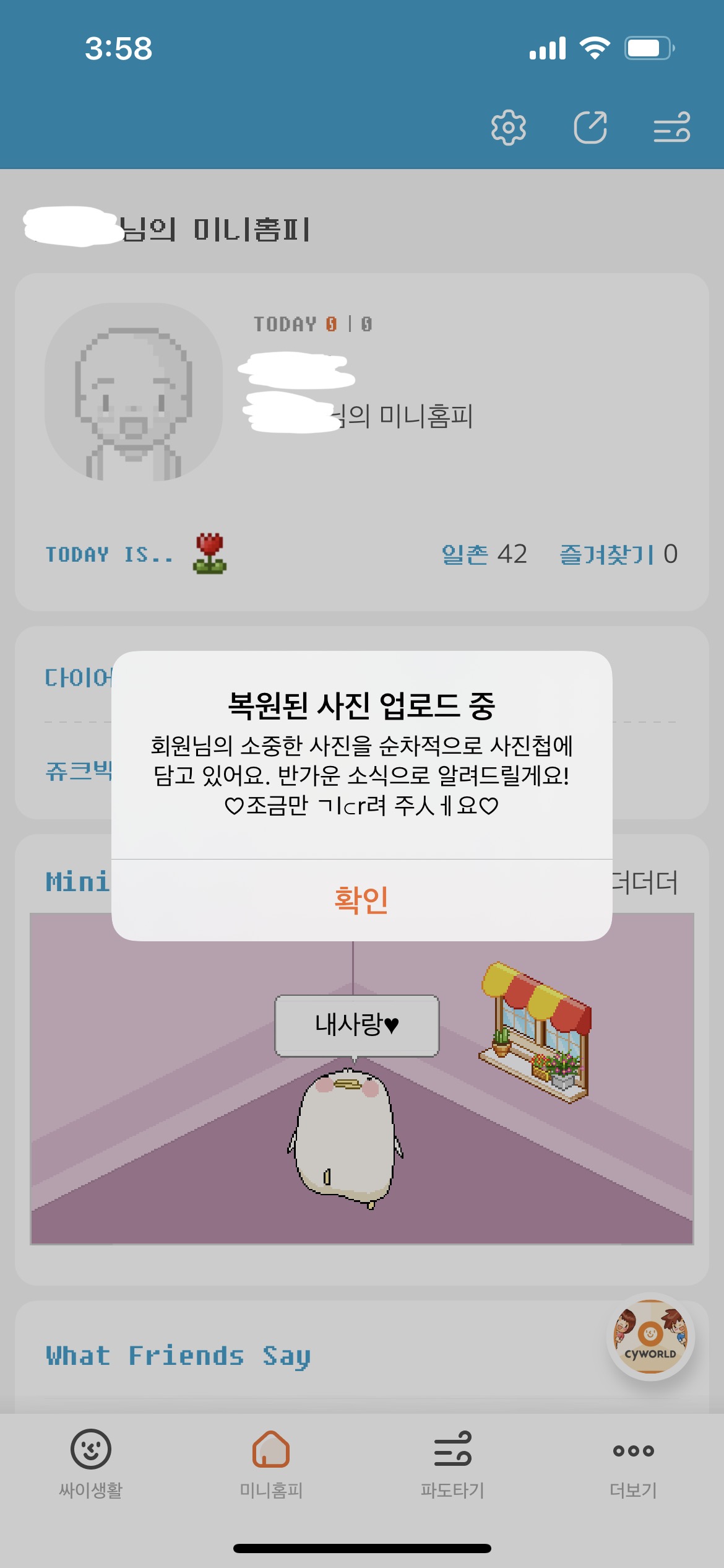 인터넷으로는 싸이월드가 없어요!