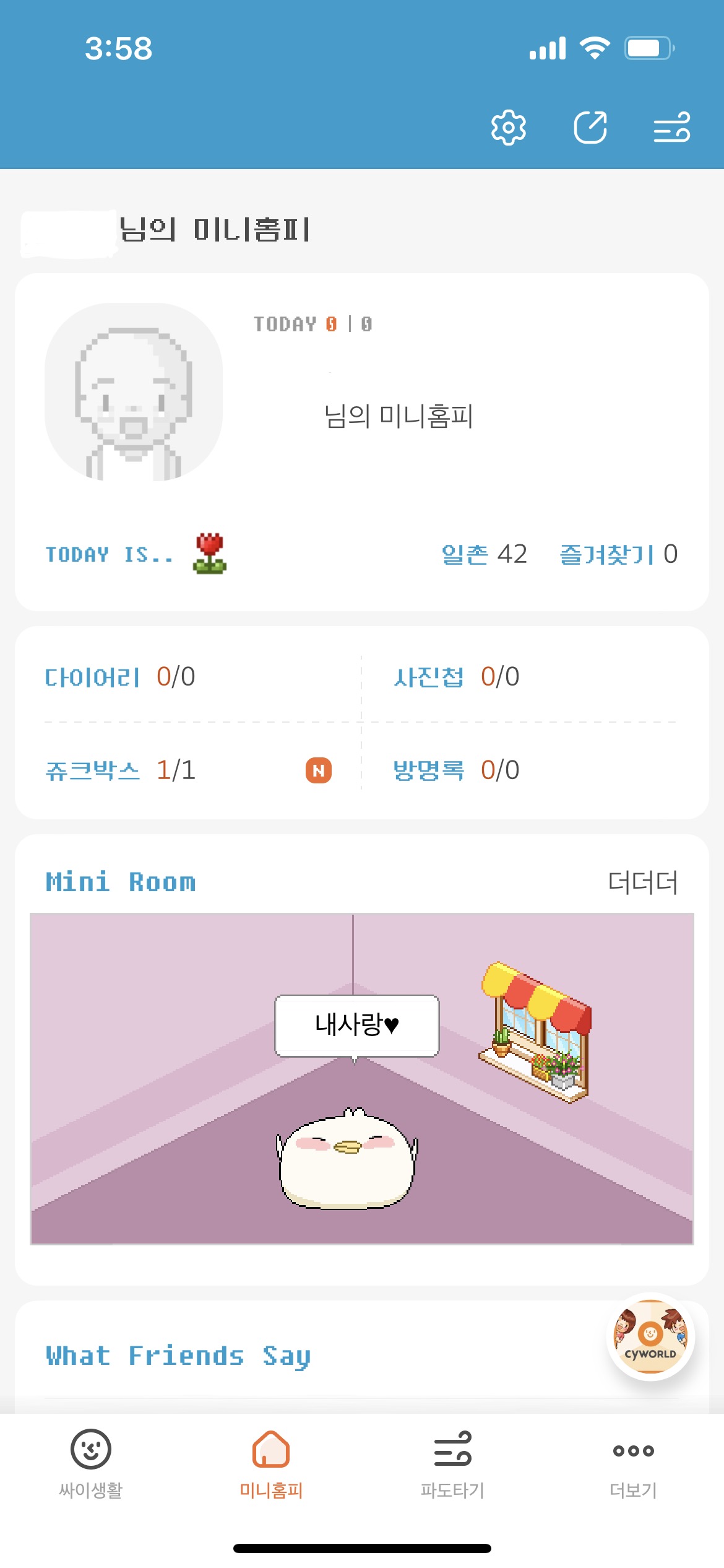 옛날 싸이월드와는 다르게