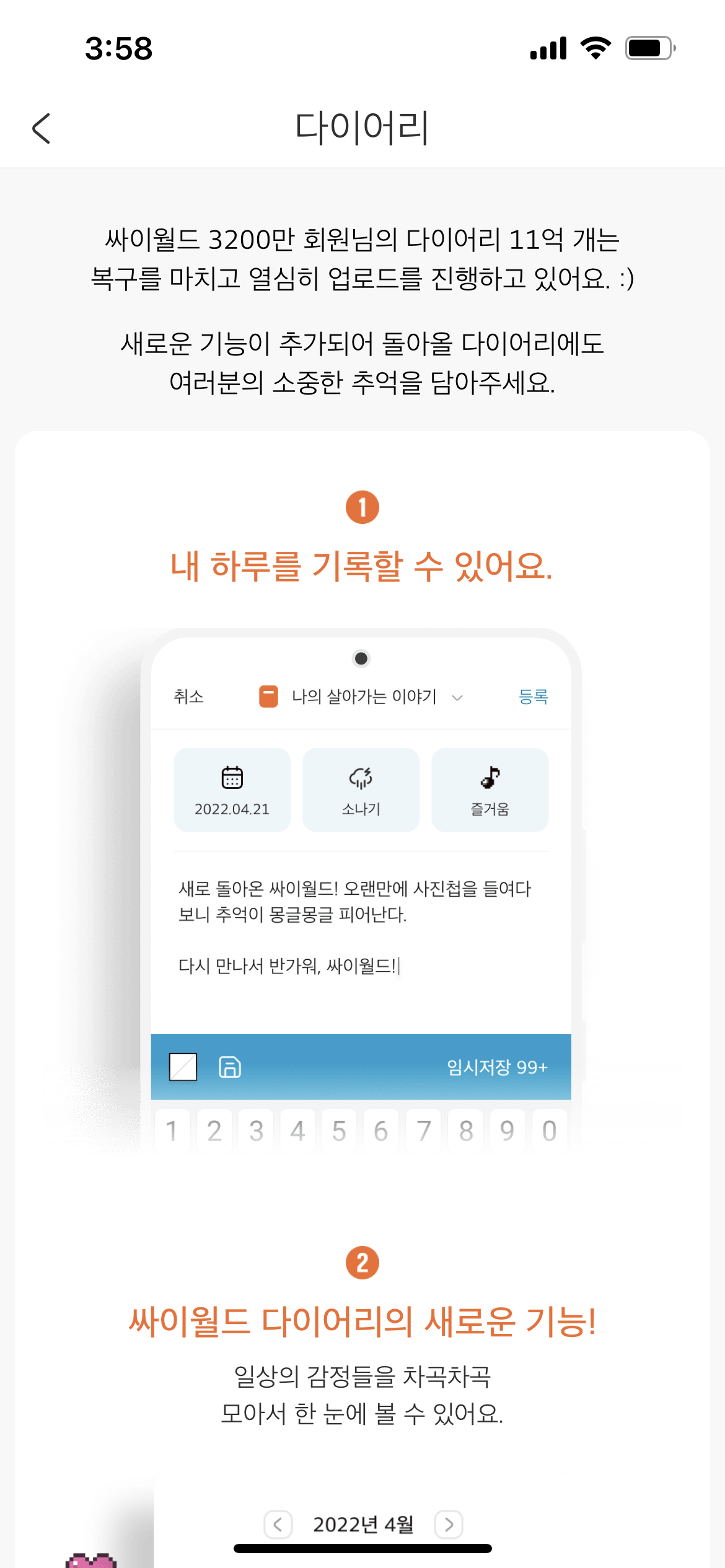 일단 사진첩은 복원중인가봐요.
