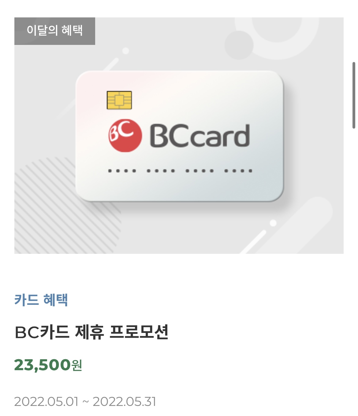 그리고 전월 실적이 맞아야 할인이 들어갑니다.