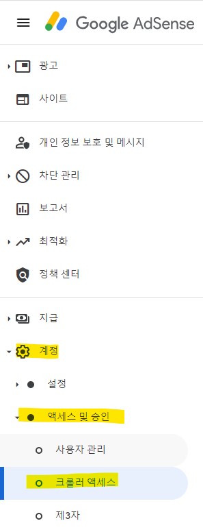 계정-> 액세스 및 승인-> 크롤러 액세스를