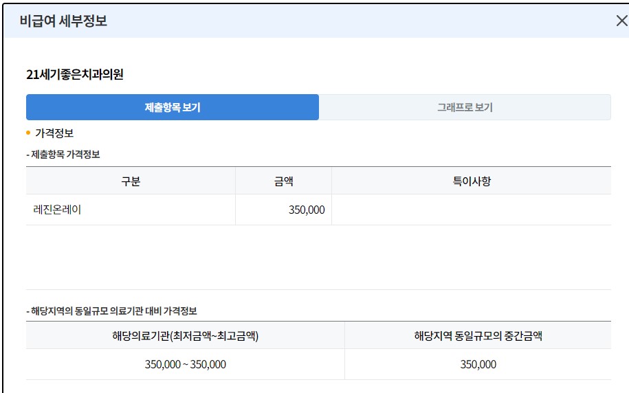 메인 -> 비급여 진료비용 정보 클릭