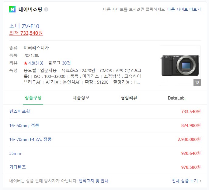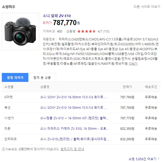 내가 생각할 때 카메라 제품은 가격방어가 잘된다. 내가 살 때는 비싸고 중고로 팔때는 싸고 중고로 내가 살때는 비싼 그런 느낌이다. 근데 소니 zv-e10 얘는 정말 할말이 많다. 내가 구입할 당시(6월초)에는 공홈에 제품이 없어서 쇼핑몰 통해서 구매를 했다. 그립과 함께오는 세트 상품을 구매했다.
