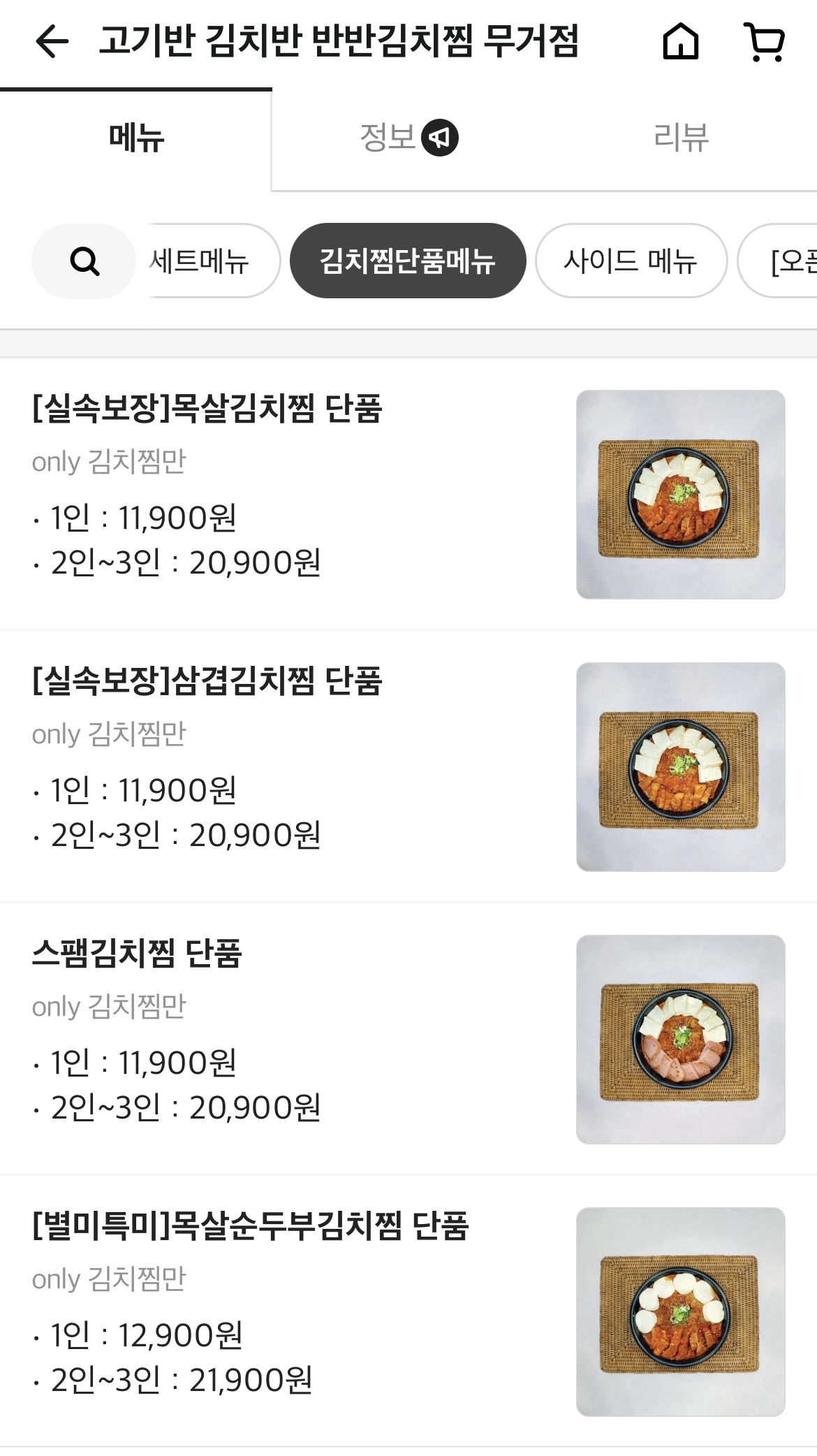 저는 단품으로 김치찜하고 밥 두개만 시켰어요!
